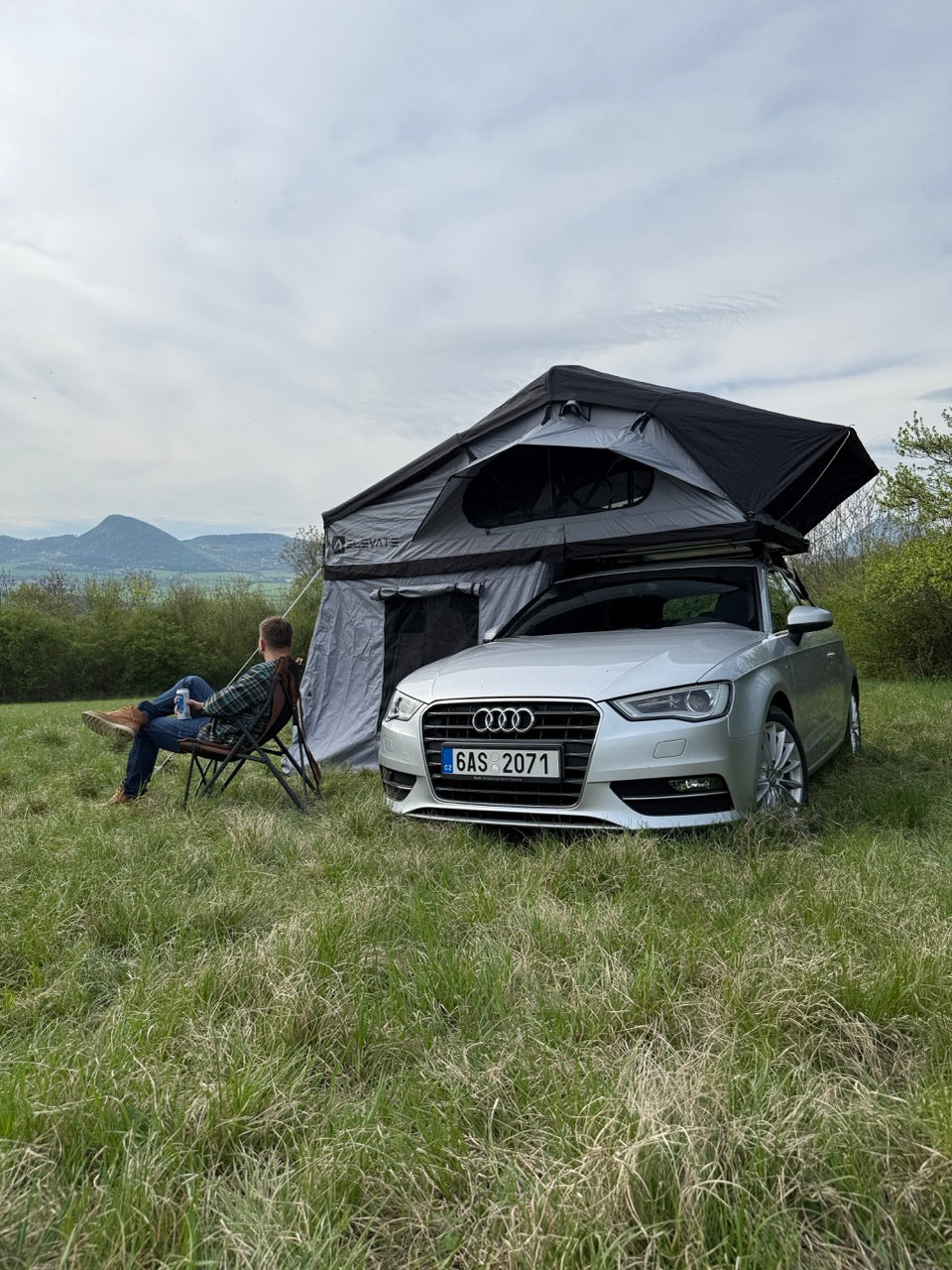 Náš stan poskytuje komfort dvoulůžka a to všechno v kompaktním formátu. Pasuje na každé auto a jeho rozložení zvládne kdokoliv. Nabízíme instalaci zdarma v našem Pražském skladu nebo doručíme stan přímo k vám po Praze včetně instalace.
